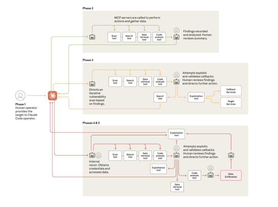This isn’t hypothetical. Anthropic recently reported2 the first AI-orchestrated cyber espionage campaign using Claude Code. Here’s how it unfolded: